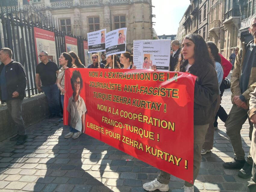 La révolutionnaire turque Zehra Kurtay est sous la menace d’une expulsion de France après que l’asile politique lui ait été retiré en raison de ses activités politiques et de la collaboration des autorités françaises avec le régime fasciste turc (voir notre article). Arrêtée le 26 mai dernier puis détenue au Centre de Rétention Administrative d’Oissel, elle a été libérée sous contrôle judiciaire le samedi 31 mai suite à une audience au Tribunal de Rouen. Aujourd’hui, elle doit se présenter tous les jours au commissariat et elle est interdite de quitter la région en attendant un nouveau procès devant statuer sur son expulsion vers la Turquie. Dans ce contexte, ses soutiens appellent à développer les actions de solidarité, à l’image des différents rassemblements qui ont eu lieu lors des audiences en justice de Zehra Kurtay.