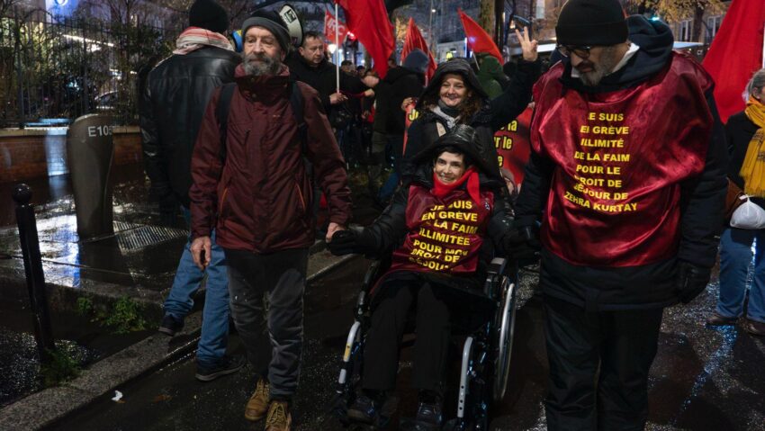 Zehra Kurtay est en grève de la faim illimitée depuis le 3 juillet 2023 pour protester contre les menaces d’expulsion et demander un statut de réfugiée politique (voir notre article). Au 5 décembre 2025, elle en est à 157 jours de jeûne et son état de santé s’est gravement détérioré, avec un poids chutant à 38 kg. Les observations médicales révèlent une forte diminution des réserves musculaires, un épuisement et des complications qui mettent sa vie en danger. Ses soutiens demandent l’arrêt immédiat des menaces d’expulsion et l’octroi d’un statut de réfugiée, appelant à une intervention urgente pour garantir sa vie et ses droits.