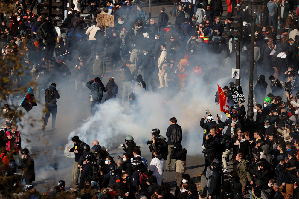 À la veille des décisions attendues du Conseil constitutionnel sur la réforme des retraites, les syndicats français ont organisé une nouvelle journée de mobilisation jeudi sur l’ensemble du territoire. La CGT a dénombré plus d’1,5 million de manifestants à travers le pays, avec des heurts dans plusieurs ville (sur la photo: à Paris). Des grèves ont perturbé à nouveau les secteurs des transports, de l’énergie ou de l’éducation. Des actions « coup de poing » ont été lancées dans la matinée avec le blocage d’axes routiers et ferroviaires dans plusieurs villes, d’un dépôt de camions poubelles à Aubervilliers et de l’incinérateur de déchets d’Ivry-sur-Seine, près de Paris. Des manifestants ont envahi à la mi-journée le siège de LVMH situé 22 avenue Montaigne, dans le VIIIe arrondissement de Paris, qui abrite également un magasin Louis Vuitton. Députés et sénateurs de gauche ont lancé une deuxième demande de référendum d’initiative partagée sur la réforme des retraites, un texte davantage « sécurisé » en termes juridiques que la demande sur laquelle le Conseil constitutionnel doit se prononcer vendredi. La préfecture a interdit toute manifestation dans les environs du conseil constitutionnel.