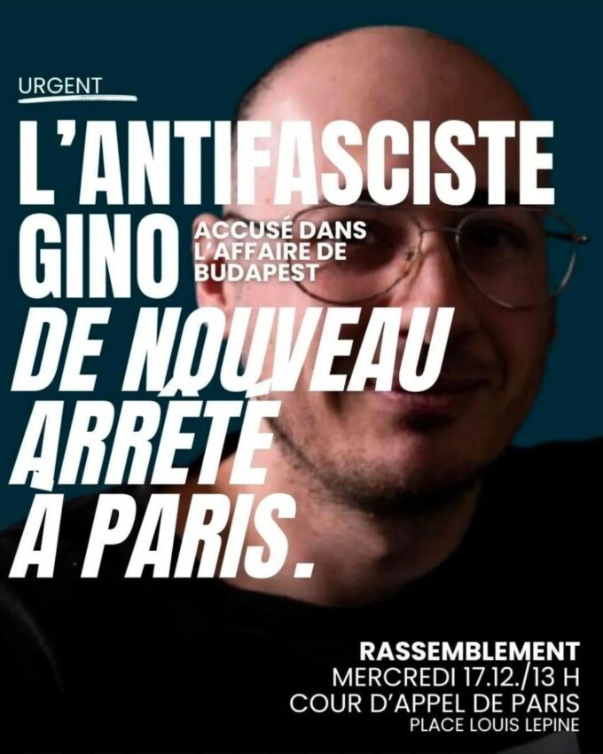Rexhino Abazaj, dit « Gino », militant antifasciste albanais, a été arrêté en région parisienne sur la base d’un nouveau mandat d’arrêt européen émis par l’Allemagne dans le cadre de l’affaire de Budapest. Déjà interpellé en France en 2024 à la demande de la Hongrie, il avait été libéré après que Paris a refusé son extradition, invoquant des risques de traitement inhumain et l’absence de garanties d’un procès équitable. Cette nouvelle arrestation pourrait conduire à une extradition vers l’Allemagne, faisant craindre à ses soutiens un transfert ultérieur vers la Hongrie. Un rassemblement de soutien est organisé le mercredi 17 décembre dès 13H devant la Cour d’Appel de Paris afin de dénoncer cet acharnement judiciaire et exiger sa libération.