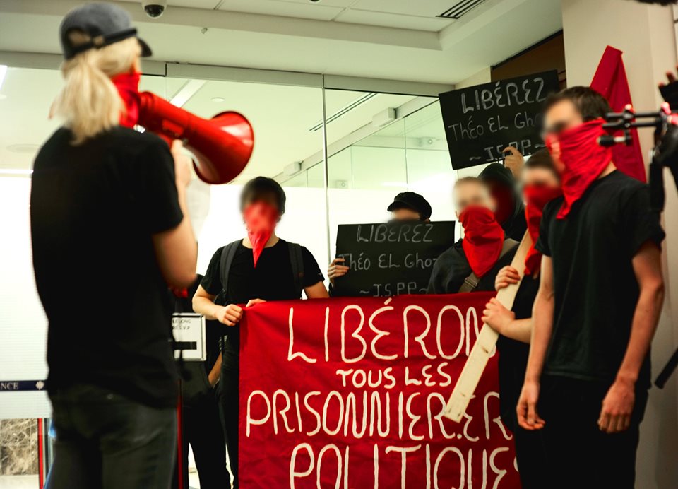 Mardi, 13 août,des militant·e·s des Jeunes Socialistes pour le Pouvoir Populaire (JSPP) ont occupé le Consulat Général de France à Montréal pour réclamer la libération de Théo El Ghozzi, prisonnier maoiste en grève de la faim depuis le 22 juillet (voir notre article). Les occupant·e·s ont lu un discours, distribué des tracts et chanté des slogans appelant à la solidarité internationale face à la répression croissante du régime de Macron. Dans ce discours, les militant·e·s exigeaient que soit reconnu le statut de prisonnier politique de Thèo, demandaient son transfert vers la maison d’arrêt de Riom, ainsi qu’ultimement sa libération avec celle de tous les prisonniers politiques de l’État français, particulièrement celle de Georges Ibrahim Abdallah.