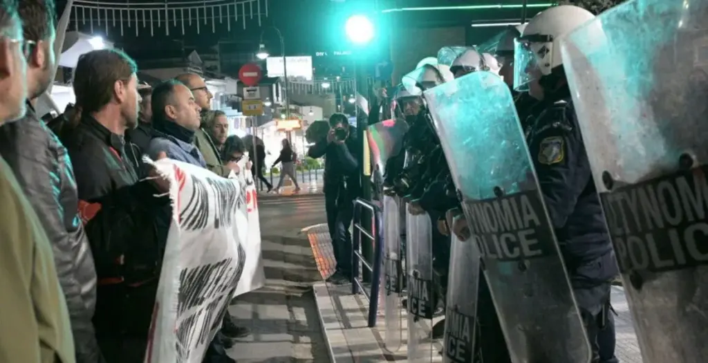 Mercredi 27 mars, une manifestation était organisée par le Parti Communiste Grec pour protester contre l’organisation d’un concert donné par le West Point Glee Club (des cadets de l’armée états-uniennes) dans la ville de Larissa, dans le centre de la Grèce. La police a tenté de bloquer les manifestant·es devant le théâtre municipal utilisant notamment du gaz lacrymogène. Quelques manifestant·es ont cependant pu forcer le barrage, ce qui a donné lieu à des affrontements à l’intérieur du théâtre.