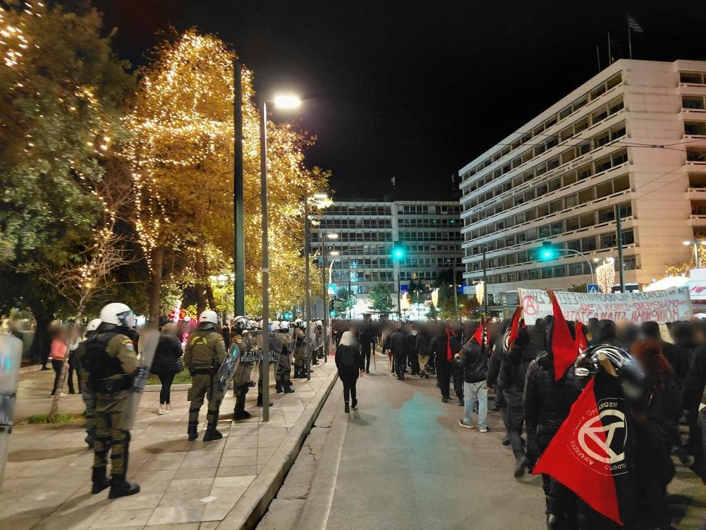 Chaque année, les mobilisations du 6 décembre commémorent le meurtre à Exarcheia du jeune anarchiste Alexandros Grigoropoulos et la révolte de 2008 qui s’en est suivie. Cette année, la journée a été marquée par une répression particulièrement intense. Dès le matin, Athènes était saturée de forces policières occupant les rues et harcelant habitants et manifestants, allant jusqu’à enlever et détenir des militants de Prosfygika. Une marche a ouvert la journée, suivie en soirée de la grande manifestation annuelle, qui a réuni plus de six mille personnes malgré une présence policière massive. Les forces de l’ordre ont violemment attaqué le cortège avant son entrée à Exarcheia, empêchant son arrivée au lieu du meurtre d’Alexis et arrêtant des dizaines de personnes. Des scènes similaires ont été signalées à Thessalonique et dans d’autres villes, où les manifestations ont été encerclées et des militants interpellés.