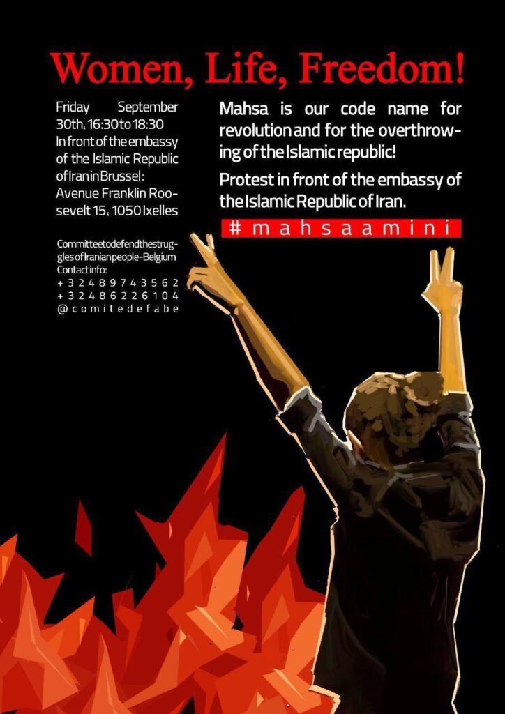 Un nouveau rassemblement de soutien au soulèvement populaire iranien aura lieu ce vendredi 30 septembre en face de l’ambassade d’Iran, 15 avenue Franklin Roosevelt, 1050 Ixelles, de 16H30 à 18H30