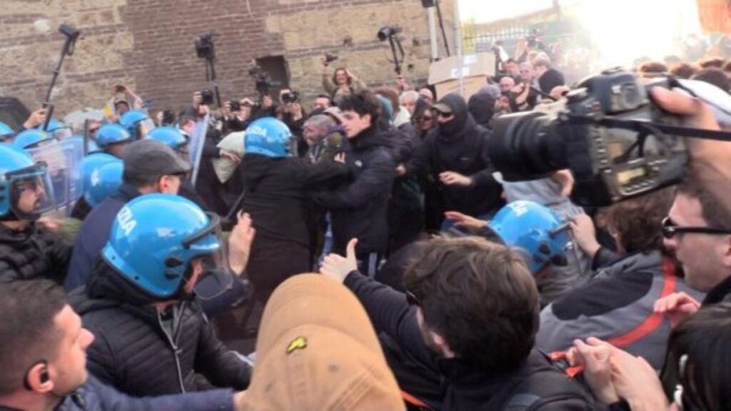 C’est sous les slogans de « Nous ne voulons pas compter les morts » que les habitants demandent une intervention du gouvernement pour faire face à l’urgence sismique et pour garantir un avenir sûr à leurs familles. Les forces de police déployées en tenue anti-émeute, ont tenté de contenir l’avancée du cortège, ils ont utilisé des matraques et d’autres moyens de répression pour disperser les manifestants, qui ont répondu en lançant des œufs et des bombes fumigènes, plusieurs blessés sont à dénombrer, dont le chef adjoint de la police de Naples.