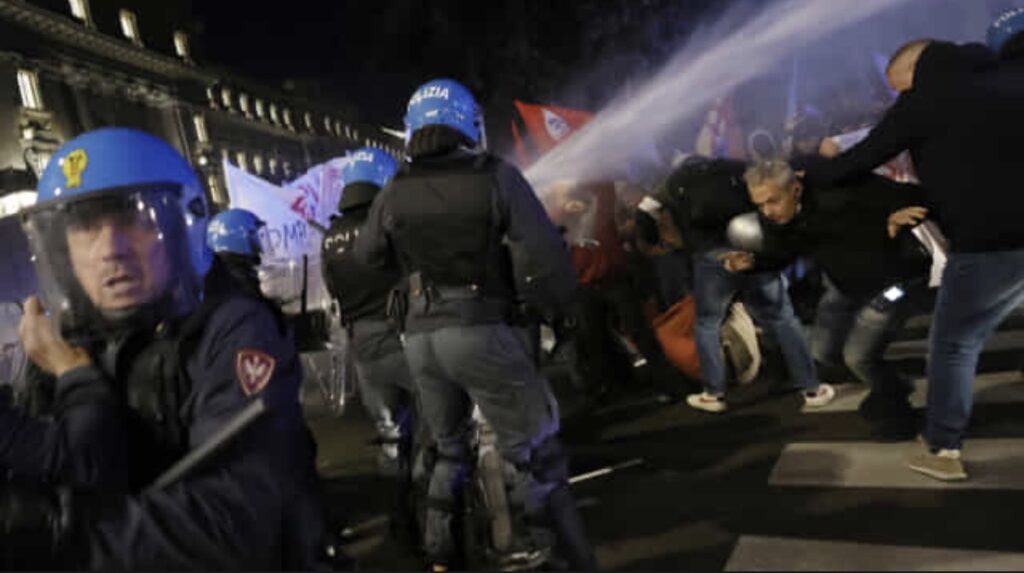 Ce vendredi 24 octobre à Rome, une manifestation de soutien à la Palestine a été violemment réprimée. Alors que la mobilisation avait commencé par un sit-in, les organisateurs ont tenté de se rendre en cortège à l’Auditorium où se déroule la Fête du Cinéma afin de sensibiliser sur le rôle de la culture dans la lutte contre le génocide. Les autorités ont exigé des manifestants qu’ils replient les drapeaux palestiniens et les drapeaux des organisations présentes. Suite au refus des organisateurs, des affrontements ont eu lieu. La police, lors de charges violentes, a utilisé des matraques et des canons à eau pour disperser la foule.