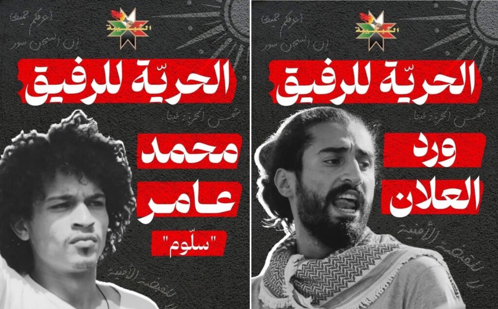 Mardi 8 avril, plusieurs militants ont été arrêtés suite à une manifestation devant l’ambassade israélienne à Amman en Jordanie pour dénoncer le génocide en cours en Palestine. Après avoir été blessés par la police, les militants de gauche Ward Nabeel Alalan et Mohammad Amer dit « Saloom » ont été placés en détention administrative sans inculpation par les forces de sécurité jordaniennes.