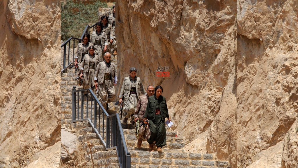 Suite à l’appel d’Abdullah Öcalan à déposer les armes, le (ex-)PKK a organisé aujourd’hui une cérémonie de désarmement au Kurdistan du Sud (nord de l’Irak). Besê Hozat, coprésidente du Conseil exécutif du KCK (Union des communautés du Kurdistan), a conduit le groupe de 15 hommes et 15 femmes guérilleros qui ont brûlé leurs armes et leurs harnachements. Depuis la déclaration d’Öcalan, le mouvement kurde multiplie les gestes de renonciation (à la pratique lutte armée, au PKK lui-même, et maintenant au fait même de détenir des armes — ce dernier point à une échelle encore symbolique) dans l’espoir d’amener le régime fasciste turc à accepter son projet de « société démocratique ». Jusqu’à présent, l’Etat turc encaisse les bénéfices de ces décisions sans faire seulement mine de concéder quoi que ce soit.