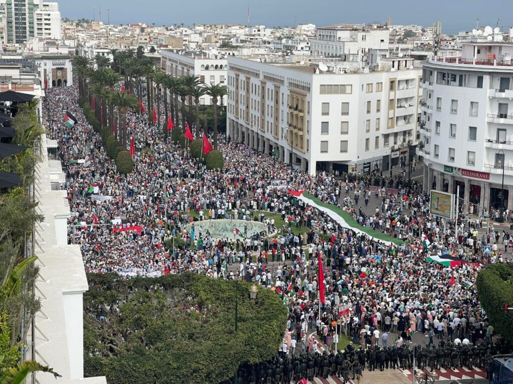 Depuis le début de l’agression israélienne contre Gaza, les autorités avaient toléré les manifestations soutenant la Palestine et dénonçant de ce fait la normalisation (photo). Toutefois, dernièrement, elles ont interdit un rassemblement qui devait se tenir dans une université du nord du Maroc. Par ailleurs, d’autres activistes ont été poursuivis en justice et condamnés à l’instar de Saïd Boukyoud, qui a écopé , au mois de novembre de trois ans de prison pour avoir insulté le roi dans une série de messages sur les réseaux sociaux. Enfin, 13 autres manifestants ont été arrêtés à Sale, en novembre, pour incitation et organisation d’une manifestation non autorisée après avoir bloqué l’entrée du supermarché français Carrefour. Ces derniers n’ont encore comparu devant un tribunal et restent détenus.