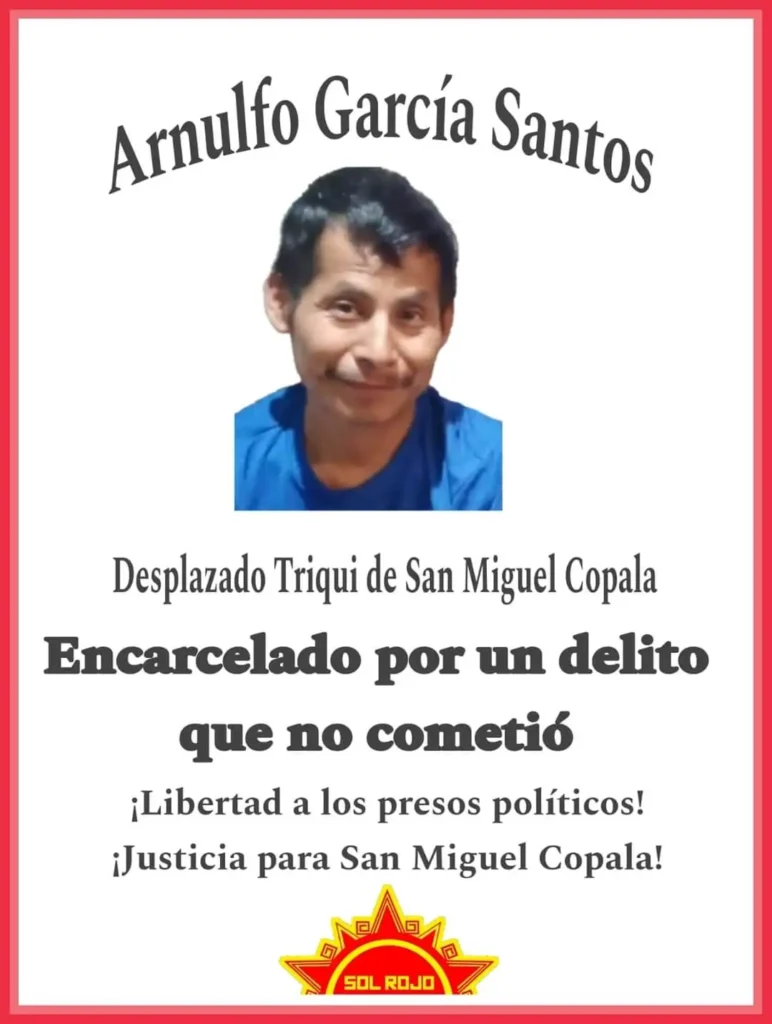 Arrêté le 28 juin 2024, le militant Arnulfo García Santos a été condamné le 3 septembre 2025 à une peine de 35 ans de prison et à plus de 2 millions de pesos de dommages et intérêts. Membre du Comité de base des familles triquis déplacées de San Miguel Copala et de Sol Rojo, il est faussement accusé d’homicide dans le cadre de la politique de criminalisation de l’organisation des Triquis, une population autochtone qui vit dans la région de Oaxaca et qui est opprimée par l’État mexicain. Depuis son incarcération, il est victime d’une politique de néglicence médicale, entraînant une perte de 80 % de sa vue.