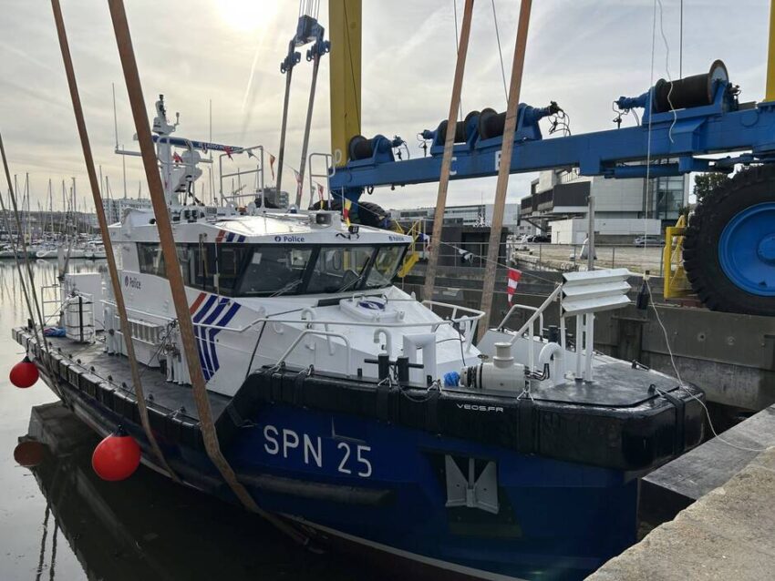 La Police de la Navigation (SPN) est active en mer du Nord, dans les ports et sur l’ensemble des voies navigables du pays.  Pour la première fois en 25 ans d’existence, la SPN, une branche de la police fédérale, est propriétaire de quatre bateaux de patrouille: les SPN 23, SPN 24, SPN 25 (photo: sa mise à l’eau) et SPN 26. Ces vedettes fluvio-maritimes mesurent 15,98 mètres de long pour une largeur de 4,98 mètres, elles sont prévues pour pouvoir manœuvrer facilement dans des espaces resserrés. Les lieux d’affectation des nouveaux navires sont à Gand (SPN 23), Liège (SPN 24), Mons (SPN 25) et Hasselt (SPN 26). Ils y seront déployés pour effectuer des opérations de contrôle sur les eaux intérieures.