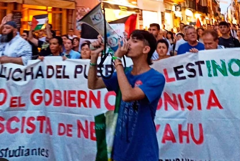 Le 25 juillet à 8h du matin, 7 agents de la police nationale cagoulés sont venus arrêtés à son domicile Carlos Ochoa, secrétaire général de l’Union des étudiants de Séville. Le motif de l’arrestation concernerait une série de dommages causés lors d’une manifestation dans une succursale de la BBVA située près de l’occupation étudiante en soutien à la Palestine à l’université de Séville. Il serait spécifiquement accusé d’un délit de dommage d’une valeur de 3 000 euros pour un graffiti contre le massacre à Gaza sur le guichet automatique de la banque. Tout au long de l’interrogatoire, accompagné de son avocat, il a invoqué son droit constitutionnel de ne pas témoigner. Il sera relâché finalement quelques heures plus tard.