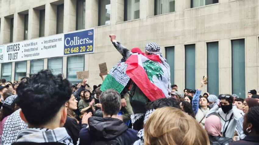 Environ 600 manifestants pro-palestiniens se sont rassemblés samedi soir vers 18h00 pour une nouvelle action, cette fois-ci menée devant l’ambassade d’Allemagne à Bruxelles. Les manifestants dénonçaient la complicité de l’Allemagne avec le génocide à Gaza et la répression, par les forces de l’ordre allemandes, des actions pro-palestiniennes, comme à l’université Humboldt de Berlin ou lors des manifestations dans les quartiers berlinois de Neukölln et Kreuzberg (voir notre article). À leur arrivée, les forces de l’ordre ont fouillé les manifestants, et ceux qui portaient de quoi se masquer le visage, de quoi se protéger des grenades lacrymogènes, ou même de simples marqueurs, ont été embarqués. La police avait bouclé les rues aux abords de l’ambassade et se tenait prête à intervenir mais il n’y a pas eu d’incidents.
