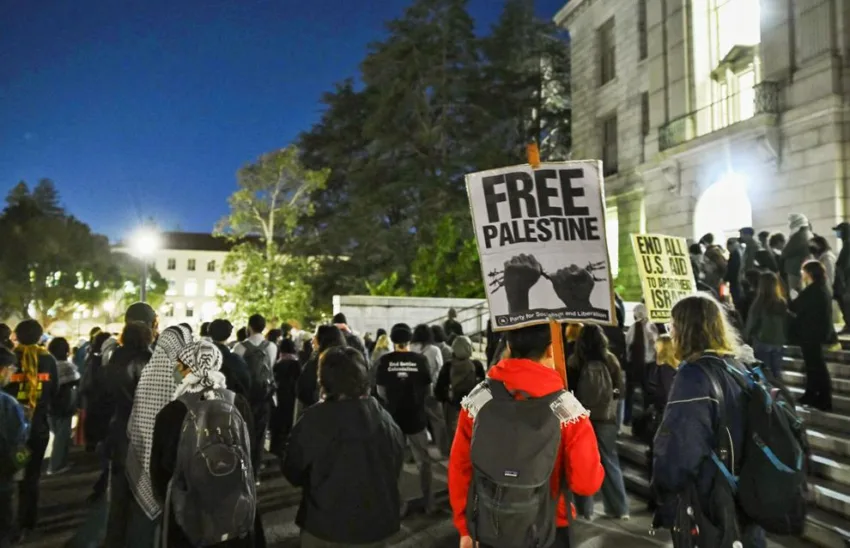 La police de l’université de Berkeley est intervenue mardi lors d’un événement organisé par des groupes d’étudiants sionistes après que des manifestants pro-palestiniens aient enfoncé une porte du bâtiment et brisé une fenêtre. L‘événement était organisé par Students Support Israel at Berkeley et l‘orateur invité était un ancien membre de l’armée israélienne, directeur du forum d’extrême droite  Kohelet Policy Forum. Environ 200 manifestants se sont rassemblés à l’extérieur du lieu de l’événement, en brandissant des pancartes sur lesquelles on pouvait lire « Arrêtez le génocide ». En s’affrontant aux organisateurs, les manifestants ont pu forcer l’entrée. La police de l’université est alors intervenue et a exfiltré l’orateur.