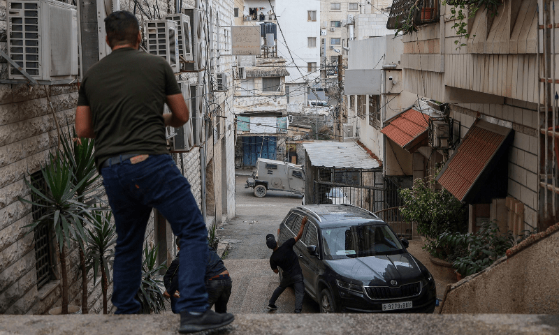 Tandis que le massacre continue à Gaza, les forces d’occupation israéliennes continuent de tuer en Cisjordanie. Huit Palestiniens ont été tués mercredi dans des affrontements avec les troupes israéliennes – sept lors d’un raid sur la ville de Tulkarem, dans le nord du pays, et un près de la ville d’Hébron, dans le sud, Confronté à la résistance des habitants à un de leur raid, les forces israéliennes ont usé de frappes de drones. Au moins 180 Palestiniens et trois Israéliens ont été tués en Cisjordanie depuis le 7 octobre, selon les responsables des deux camps. Sur la photo: des jeunes habitants de Tulkarem caillassant hier les véhicules des forces d’occupation.