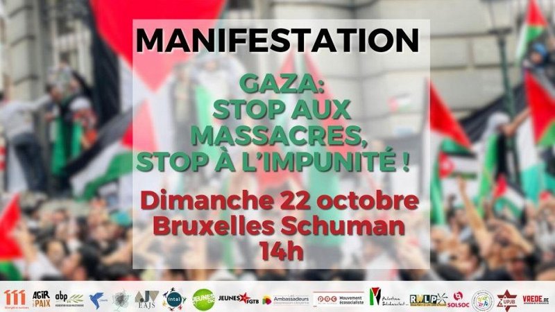 A Bruxelles, après les interdictions des manifestations organisées par le Secours Rouge, une autorisation a été accordée à l’Association Belgique-Palestine et à d’autres organisation pour un rassemblement dimanche rond-point Schumann à 14H. Le Secours rouge appelle à se rendre à cette manifestation, comme il appelle à saisir toutes les occasions de manifester sa solidarité avec la résistance du peuple palestinien.