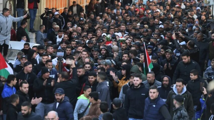 L’armée israélienne a mené un raid dans le camp de réfugiés palestiniens de Qalandiya, entre Ramallah et Jérusalem, pour arrêter un résident suspecté d’appartenir à la résistance. Les soldats ont encerclé la maison de ce militant et ont ouvert le feu, tuant Samir Aouni Harbi Aslan, 41 ans qui tentait de s’interposer durant l’arrestation de son fils. Deux autres Palestiniens, Habib Abdelrahmane Kamil, 25 ans, et Abdelhadi Nazal, 18 ans, ont été tués par des balles dans la ville de Qabatiya, près de la ville de Jénine, au nord de la Cisjordanie. Ces trois décès portent à neuf le nombre de Palestiniens tués depuis le début de l’année. 18 personnes ont été arrêtées dans la nuit de mercredi à jeudi dans des opérations militaires israéliennes en Cisjordanie. L’armée a notamment mené un raid à Naplouse, durant lequel deux journalistes palestiniens ont été blessés. Des personnes en deuil se sont rassemblées dans le camp de Qalandiya, pour les funérailles de Samir Aouni Harbi Aslan (photo).
