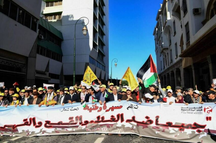 Dess milliers de Marocains ont manifesté dimanche à Rabat contre la vie chère et la répression politique,  sur fond d’accélération de l’inflation et de montée de la grogne sociale. Cette marche nationale, l’une des plus importantes des derniers mois, était organisée par le Front social marocain (FSM), qui fédère des partis politiques et des organisations syndicales de gauche. “Le peuple veut la baisse des prix… Le peuple veut faire tomber le despotisme et la corruption”, scandaient les manifestants. La flambée des prix (+7,1% en octobre sur un an), les hausses du coût des carburants, des denrées alimentaires et des services, se combinent au Maroc à une sécheresse exceptionnelle.