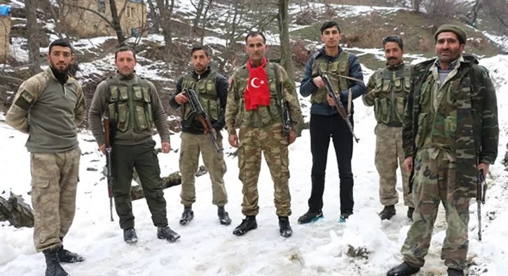 Les « gardes de village » sont des unités paramilitaires utilisées au Kurdistan contre les guérillas et les opposants. Ils se composent dans une large mesure de chefs de clans et de tribus, de propriétaires terriens, de personnes ayant travaillé avec l’État pendant des décennies. Certains sont volontaires, motivés par leur positions sociales, d’autres sont mercennaires, d’autres encore sont recrutés par la menace. Le système actuel est apparu en 1985, un an après que le PKK ait lancé sa lutte armée. Des milliers de villages kurdes qui ont rejeté le système des gardes villageois ont été rasés par l’État dans les années 1990.