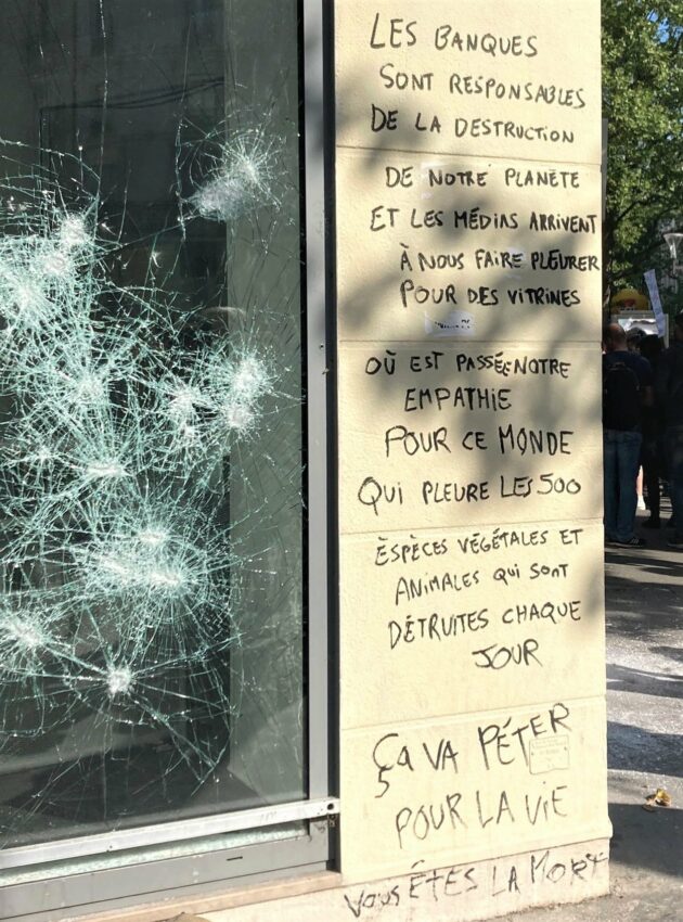 Pas un défilé ritualisé, pas une cohabitation des luttes, pas une plate-forme des revendications: mais l’expression de notre volonté commune de mener un processus révolutionnaire jusqu’au bout, jusqu’à la liquidation du capitalisme et des autres systèmes de domination, de sa classe dominante, et de tout ce qui assure leur pouvoir: leur État, leur parlement, leurs lois, leurs complices “critiques”, leurs alliances et leur police.