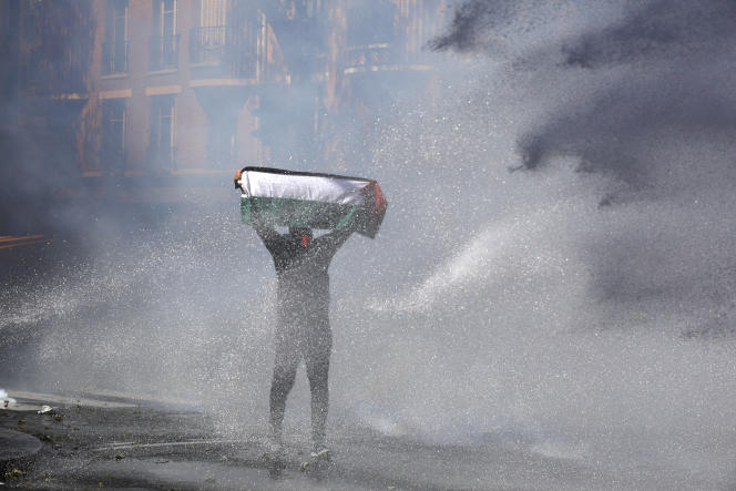 Des dizaines de milliers de personnes ont manifesté en France dans 60 rassemblements ce samedi en soutien aux Palestiniens à travers la France. Elles étaient des milliers à Paris, malgré l’interdiction émise par la Préfecture de police de Paris. 4.200 policiers et gendarmes  ont appliqué les consignes de « dispersion systématique et immédiate » dès que des manifestants tentaient de se regrouper. Un déploiement policier massif dans le quartier de Barbès a empêché les manifestants qui s’étaient donné rendez-vous pour se diriger vers Bastille de déployer un cortège. La police a chargé à plusieurs reprises, utilisé des canons à eau et des gaz lacrymogènes. Au total, 44 personnes ont été interpellées à Paris (51 pour toute la France), où, selon des chiffres provisoires du parquet, 15 personnes étaient en garde à vue en début de soirée, notamment pour « participation à un groupement formé en vue de violences », « participation à un attroupement après sommation » et « violences sur les forces de l’ordre ». Outre les 44 interpellations, 367 personnes ont été verbalisées. D’autres manifestations ont été interdites, comme à Nice et à Grenoble, ou à Aubervilliers et Montreuil, en Seine-Saint-Denis.