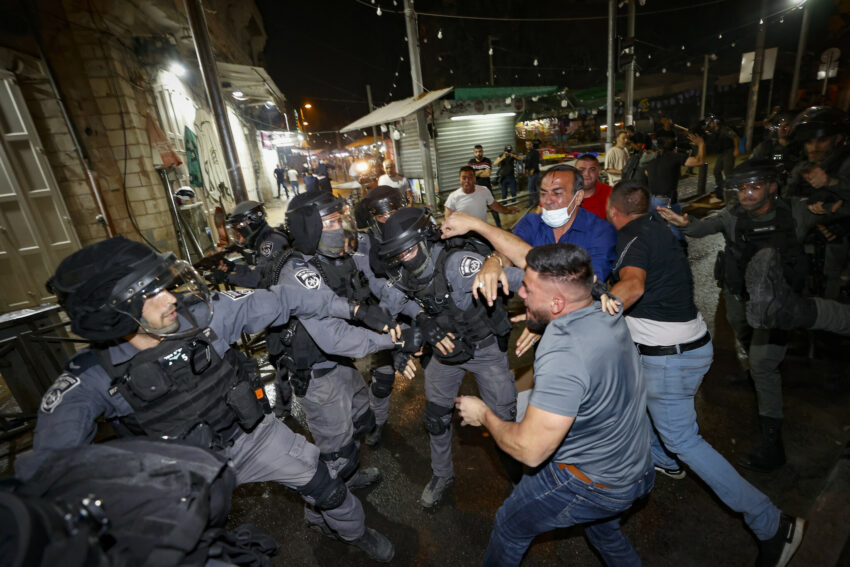 La journée de lundi a débuté de manière frontale à Jérusalem, avec des jets de pierre par des centaines de Palestiniens contre les forces de l’ordre israéliennes positionnées sur l’Esplanade des Mosquées qui tiraient des grenades assourdissantes, du gaz lacrymogènes et des balles en caoutchouc. Plus de 520 Palestiniens ont été blessés, dont de nombreux aux yeux et à la tête, alors que la police israélienne a fait état d’au moins neuf blessés dans ses rangs, pour ces accrochages les plus violents depuis 2017 à Jérusalem-Est. Des manifestations ont commencé à se multiplier dans différentes villes de Cisjordanie occupée, où le Croissant-Rouge a dénombré un total de 200 blessés.