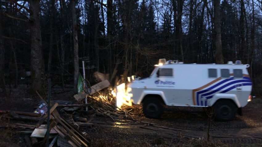 La police est intervenue à minuit pour expulser la ZAD d’Arlon, sur le site de l’ancienne sablière de Schoppach, où l’intercommunale IDELUX veut construire un parc d’activités. Un dispositif important (comptant un total de 150 policiers locaux et fédéraux) a mobilisé des policiers anti-émeutes et de nombreux véhicules, dont au moins un blindé Shortland. 9 personnes présentes sur la ZAD ont été arrêtées administrativement. Elles n’ont pas opposé de résistance. L’opération est menée par la police locale, avec l’appui du corps d’intervention de la police fédérale. L’expulsion s’est faite par surprise pour éviter une mobilisation comme cela avait pu être le cas début janvier.