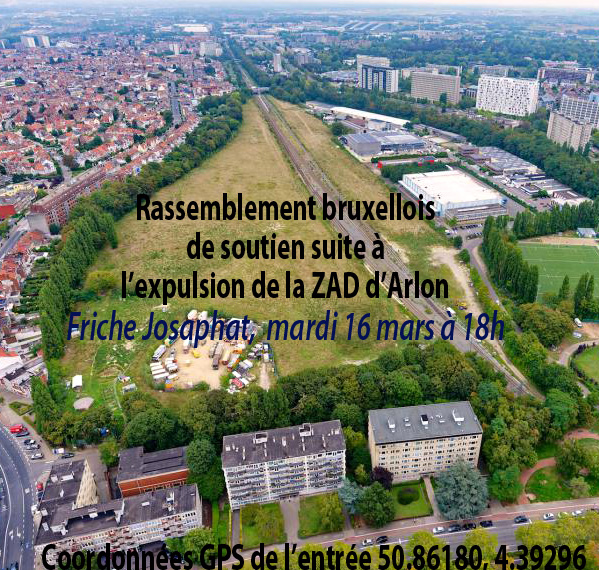 Mise à jour 22H00: Ce lundi soir, un peu plus de cent personnes se sont rassemblées place Léopold à Arlon pour apporter leur soutien aux zadistes expulsés au matin par les forces de l’ordre. Une personne a été arrêté à ce rassemblement qui a déjà été remise en liberté. Par contre, deux des neuf zadistes arrêtés ce matin ont été placés en arrestation judiciaire. Un autre rassemblement a eu lieu à Namur, au Quai de l’Écluse à Salzinnes. Une vingtaine de personnes se sont rassemblés en soutien à la ZAD et occupent un terrain soumis à une enquête publique.
