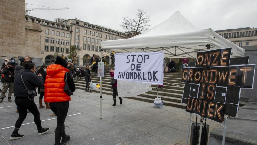 Quelques dizaines de personnes se sont rassemblées contre les violences policières ce dimanche matin à 11h00 au bas des marches du Mont des Arts à Bruxelles. Ce rassemblement, toléré par la police, protestait notamment contre les nombreuses arrestations administratives (245 au total dont 91 visant des mineurs) à la suite de la manifestation du dimanche 24 janvier à Bruxelles. A ce rassemblement a succédé un autre, autorisé celui-là, de quelques dizaines de personnes également, contre le couvre-feu.