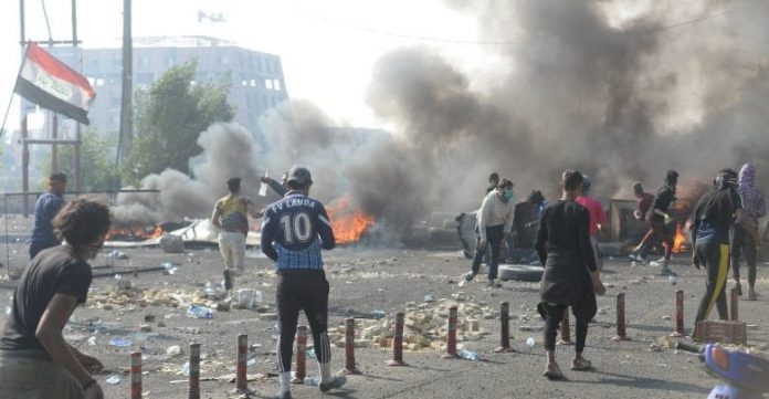 De de jeunes manifestants  et de policiers se sont affrontés de nouveau lundi sur la place Tahrir de Bagdad, après une nuit de heurts notamment à Kerbala, au sud-ouest de la capitale, au lendemain du premier anniversaire de la révolte en Irak. Des dizaines de jeunes jetaient des pierres tandis que les policiers répondaient par des tirs de grenades lacrymogènes et assourdissantes. Dans la ville de Kerbala, de jeunes manifestants ont jeté jusque tôt lundi matin des pierres sur des policiers aux boucliers métalliques et longues matraques, qui les leur renvoyaient. Des milliers d’Irakiens ont défilé dimanche à travers le pays pour marquer le premier anniversaire de la “révolution d’octobre”, mouvement social inédit dans le pays réclamant notamment une réforme du pouvoir et une amélioration des conditions de vie.