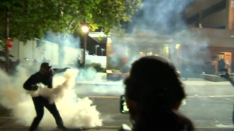 Les manifestants se sont rassemblés à Willamette Park avant de marcher sur l’ICE. Les manifestants scandaient des slogans à l’extérieur du bâtiment lorsque des agents du Service fédéral de protection sont sortis leur faire face vers 22 heures, heure locale. La police de Portland avait averti qu’elle utiliserait « des armes à impact, des gaz lacrymogènes et / ou des munitions OC » si les gens refusaient de dégager les routes et l’ICE. Les heurts ont alors commencés: caillassage contre tirs de grenades à gaz.