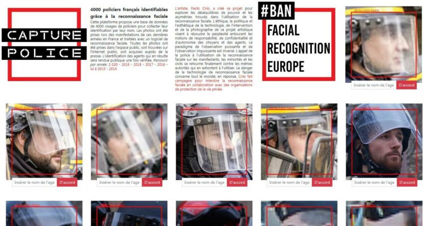 Un autre projet de ce genre était en cours ce mois en France, avant d’être arrêté. Paolo Cirio, un artiste et hacktiviste a publié en ligne les photos de 4 000 visages de policiers français pour une exposition intitulée « Capture », qu’il a décrite comme la première étape du développement d’une application de reconnaissance faciale. Il a rassemblé les visages de 1 000 photos qu’il avait recueillies sur Internet et auprès de photographes ayant participé à des manifestations en France. Mais Cirio a retiré les photos après que le ministre français de l’Intérieur ait menacé de poursuites judiciaires. Le site de Paolo Cirio renvoie désormais sur une pétition demandant l’interdiction de la reconnaissance faciale en Europe.