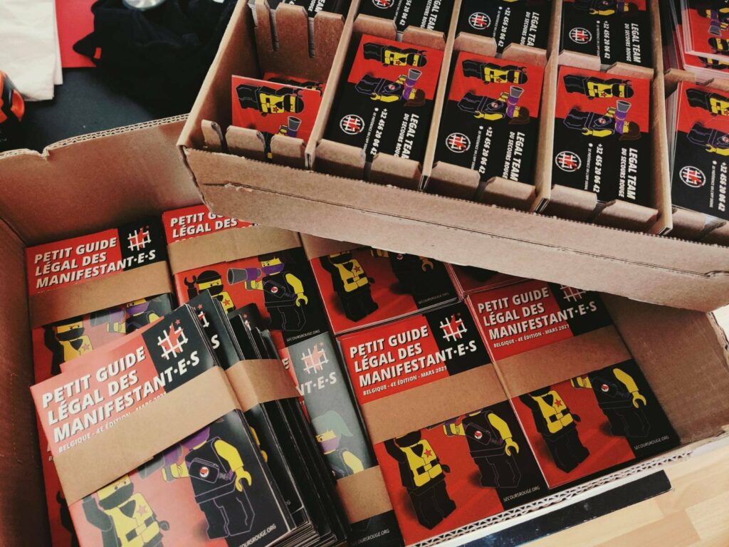 La 4e édition du Petit guide légal des manifestant.e.s vient de paraître. Il expose les informations de base, actualisées, relatives aux types de manifestations et d’arrestations, aux prises de photo ou d’empreinte, aux conditions des premiers interrogatoire etc. Les groupes qui désirent en disposer pour les distribuer à leurs membres et/ou aux participants à leurs activités peuvent se mettre en contact avec nous. Ont aussi été réimprimées des milliers de cartes « légal team » indiquant le numéro de la permanence et les liens vers diverses ressources anti-répression (dossier légal complet, liste des lieux de détention, etc.). Le Secours Rouge remercie la Fondation Marius Jacob pour sa contribution aux frais de ces rééditions.