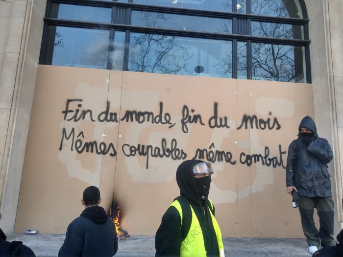 Ce samedi 27 avril, plus de 23 600 personnes ont manifesté dans toute la France selon le ministère de l’Intérieur, chiffre contesté par les manifestants qui ont compté plus de 60 000 personnes dans la rue. À Paris, la préfecture de police a procédé à 13.500 contrôles préventifs et à 14 interpellations. La mobilisation parisienne était divisée en deux cortèges, la plus importante mêlant « gilets jaunes » et gilets rouges de la CGT.