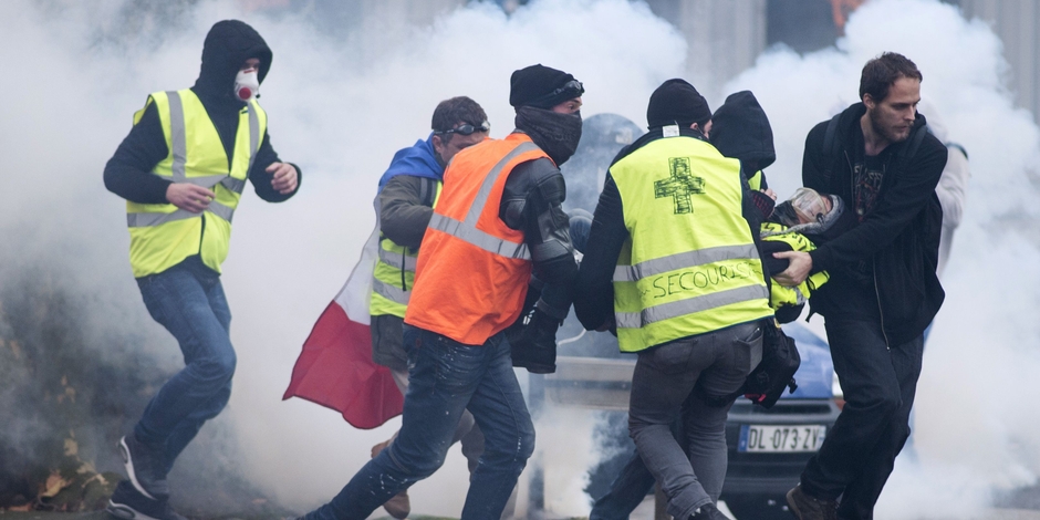 Les mobilisations des gilets jaunes de samedi ont donné lieu à des affrontements à Toulouse, Lyon, Lille, Carcasonne, Nîmes, Montpellier, Grenoble, Besançon, Paris, Perpignan (A9), Rouen, Caen, Voreppe, Le Magny, Nancy, Bordeaux, Amiens et Nantes. A Paris, des incidents ont eu lieu, notamment au croisement de l’avenue George V et des Champs-Elysées. Un incident particulièrement médiatisé a vu une vingtaine de manifestants battre trois policiers parmi lesquels celui qui avait lancé une grenade en leur direction.
