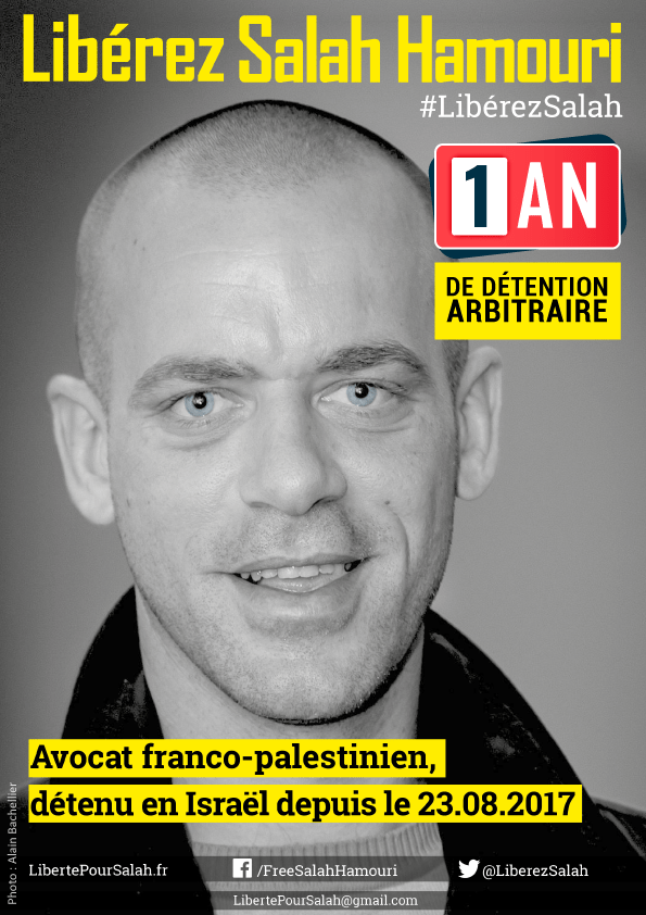 Un an après son arrestation, le Franco-Palestinien Salah Hamouri est toujours détenus dans l’une des plus grandes prisons israéliennes, Ktzi’ot, dans le désert du Néguev. Sans connaître l’ampleur des charges qui pèsent contre lui, sans assurance sur sa date de libération parce qu’ en « détention administrative ». Cette spécificité israélienne permet d’incarcérer pour des durées renouvelables toute personne suspectée de menacer la sécurité de l’Etat. La décision est prise par un juge lors d’audiences à huis clos, sur les recommandations confidentielles du Shabak (le renseignement intérieur israélien) que l’accusé n’a même pas le droit d’entendre.