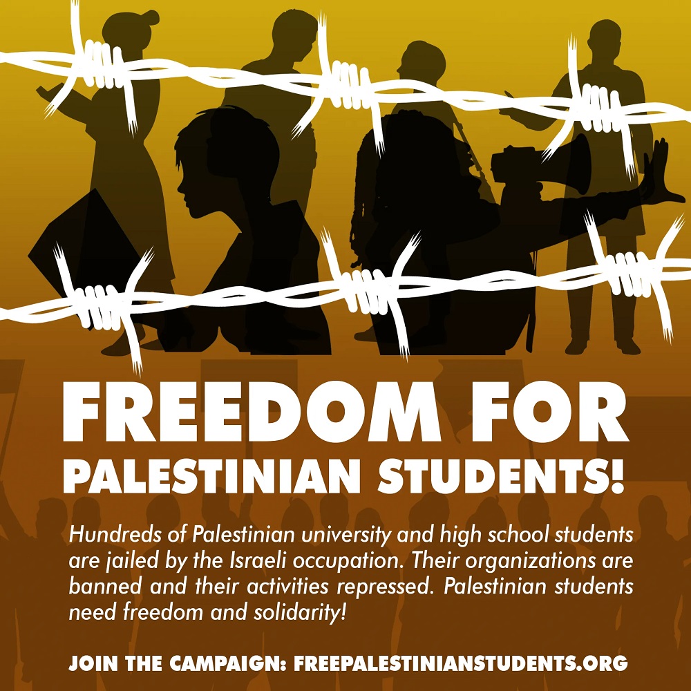 Les étudiants palestiniens peuvent être envoyés en détention administrative : forme de détention sans accusation ni procès, indéfiniment renouvelable par périodes de six mois. Les Palestiniens passent couramment des années en prison sans inculpation, sans procès et sans véritable contestation de la privation de leurs droits. Ils peuvent être traduits devant les tribunaux militaires israéliens, qui condamnent plus de 99% des Palestiniens qui y sont jugés. Une campagne est lancée en solidarité avec eux: voir ici