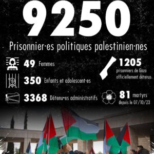 La santé d’Ahmad Sa’adat s’est gravement détériorée, en raison des violences et de la négligence médicale imposées par l’administration pénitentiaire. Actuellement en isolement dans la prison de Meggido, le secrétaire général du FPLP a subi une importante perte de poids après avoir été battu et privé de soins. Par exemple, des témoignages attestent qu’Ahmad Saadat a été laissé agonisant dans la cour de la prison, sans soins, pendant un long moment.