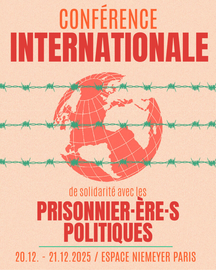 Les 20 et 21 décembre à Paris, la Plateforme de la Voix des Prisonniers organise une Conférence internationale de solidarité réunissant des anciens prisonniers politiques ainsi que des délégués et militants de nombreux pays. L’événement vise à renforcer le soutien aux prisonniers politiques du monde entier, confrontés à la répression, à l’isolement, à la torture, au refus de soins et aux violations répétées de leurs droits. À travers des échanges sur la lutte des classes et les prisons, les formes de résistance en détention, la condition des femmes et personnes LGBTI+ ou encore les moyens de développer la solidarité internationale, la conférence appelle les organisations et les militants attachés à la défense des prisonniers politiques à unir leurs forces pour soutenir celles et ceux qui poursuivent leur combat pour la liberté en dépit de la répression (voir l’appel). Une délégation du Secours Rouge International sera présente et interviendra lors de différents panels.