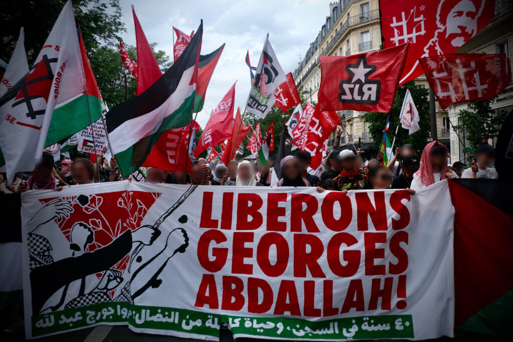Samedi 14 juin, le Secours Rouge International était présent à la grande marche pour la libération de Georges Abdallah et de la Palestine organisée à Paris avec la participation de délégations venant de France, de Belgique, de Suisse et d’Italie (voir notre appel). Dans un bloc internationaliste réunissant des centaines de personnes co-organisé par plusieurs organisations (Samidoun, Kifah, Libérons Georges Abdallah 38, CMPK, Collectif Vietnam Dioxine, Young Struggle, Comité de soutien à la Palestine 31, Charleroi pour la Palestine, CSRP, GPI, etc.), nous avons réaffirmé la centralité du combat pour la libération de Georges Abdallah pour la gauche révolutionnaire en Europe. Par ailleurs, plusieurs actions ont eu lieu durant la marche en soutien aux luttes anticolonialistes comme en Kanaky ou aux prisonniers de la cause palestinienne en Europe.