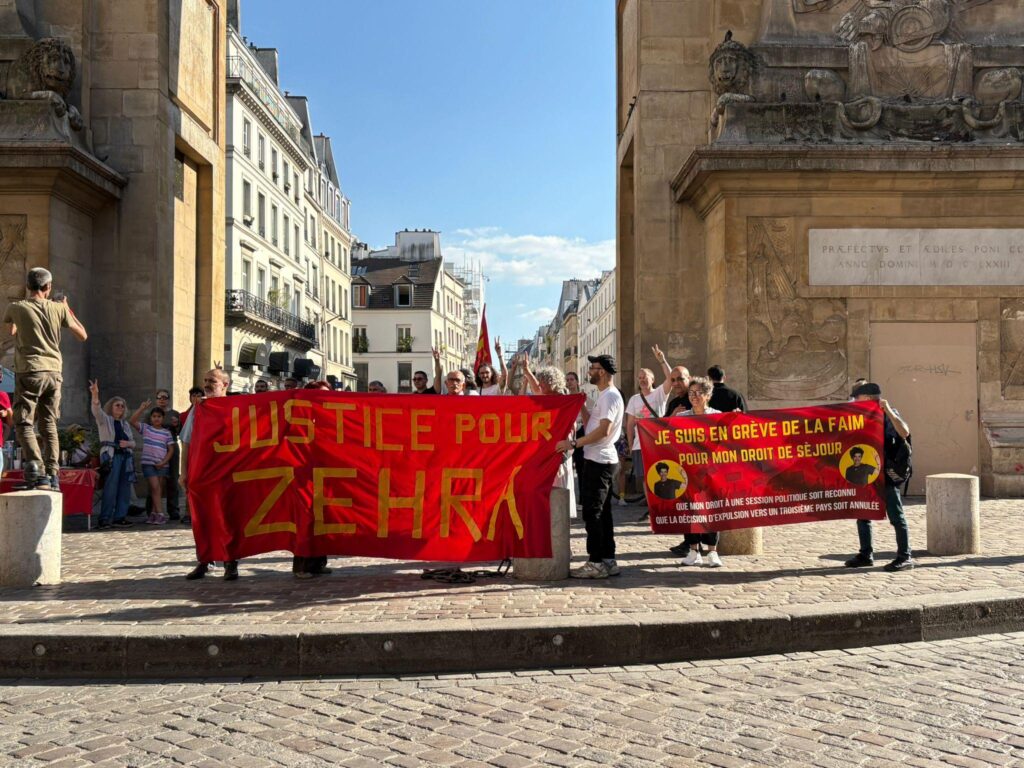 Depuis le 3 juillet dernier, la journaliste et révolutionnaire turque Zehra Kurtay est en grève de la faim illimitée pour protester contre la remise en cause de son statut de réfugiée politique et le risque de son expulsion imminente vers un pays tiers. D’abord sous la menace d’une expulsion en Turquie, la mobilisation a permis d’annuler cette première décision (voir notre article) alors que sa tête est mise à prix par le régime fasciste turc en raison de ses engagements au sein de la gauche révolutionnaire. Afin de la soutenir, une manifestation était organisée le 12 juillet dernier à Paris en soutien à Zehra Kurtay et contre la politique de l’impérialisme français.