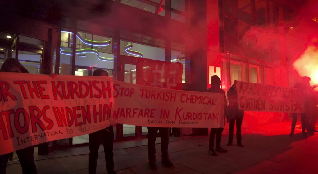 Des manifestants kurdes avaient été arrêtés vendredi pour avoir occupé l’Organisation internationale pour l’Interdiction des Armes Chimiques (OPCW) à La Haye. Ils protestaient contre le silence de l’OPCW face à l’usage d’armes chimiques par l’armée turque au Kurdistan. Une manifestation avait eu lieu pour les mêmes raison le 3 novembre devant le même bâtiment, qui avait été aussi ciblé le 16 novembre lorsque des militant.e.s avaient accroché une banderole dénonçant la guerre chimique turque au Kurdistan et lancé des fumigènes.