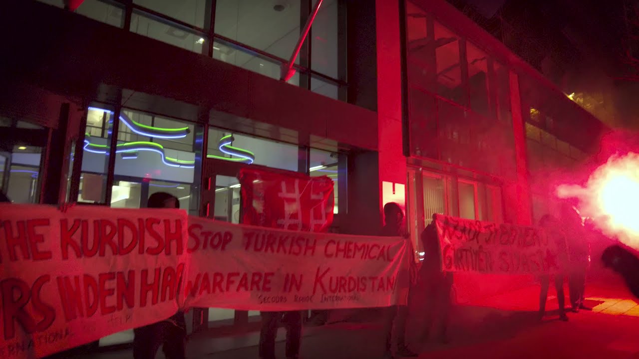 Des manifestants kurdes avaient été arrêtés vendredi pour avoir occupé l’Organisation internationale pour l’Interdiction des Armes Chimiques (OPCW) à La Haye. Ils protestaient contre le silence de l’OPCW face à l’usage d’armes chimiques par l’armée turque au Kurdistan. Une manifestation avait eu lieu pour les mêmes raison le 3 novembre devant le même bâtiment, qui avait été aussi ciblé le 16 novembre lorsque des militant.e.s avaient accroché une banderole dénonçant la guerre chimique turque au Kurdistan et lancé des fumigènes.