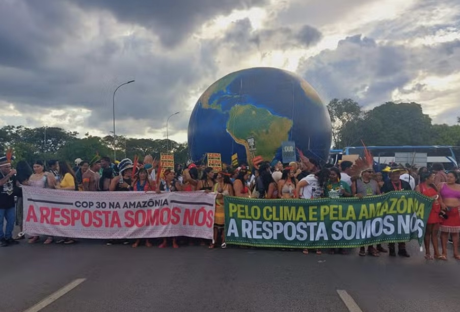 À l’occasion de la COP 30, les peuples autochtones d’Amérique tiennent cette semaine une assemblée annuelle à Brasilia, ils y ont invité des peuples d’Océanie. Ensemble, ils ont marché jeudi vers le parlement brésilien, avec des banderoles pour la défense du climat et de l’Amazonie. La marche avait appelé le gouvernement à reconnaître officiellement les terres ancestrales et à les protéger des intérêts de l’agro-industrie. La répression a éclaté en soirée dans la capitale, alors que des groupes de manifestants quittaient les lieux. Les policiers ont utilisé des gaz lacrymogènes contre la foule. La députée fédérale Célia Xakriabá, du parti de gauche PSOL ( Parti du Socialisme et de la Liberté ), malgré son identité, elle n’a pas pu entrer dans le bâtiment du Congrès et a dû être soignée pour des blessures occasionnées par les forces de l’ordre.