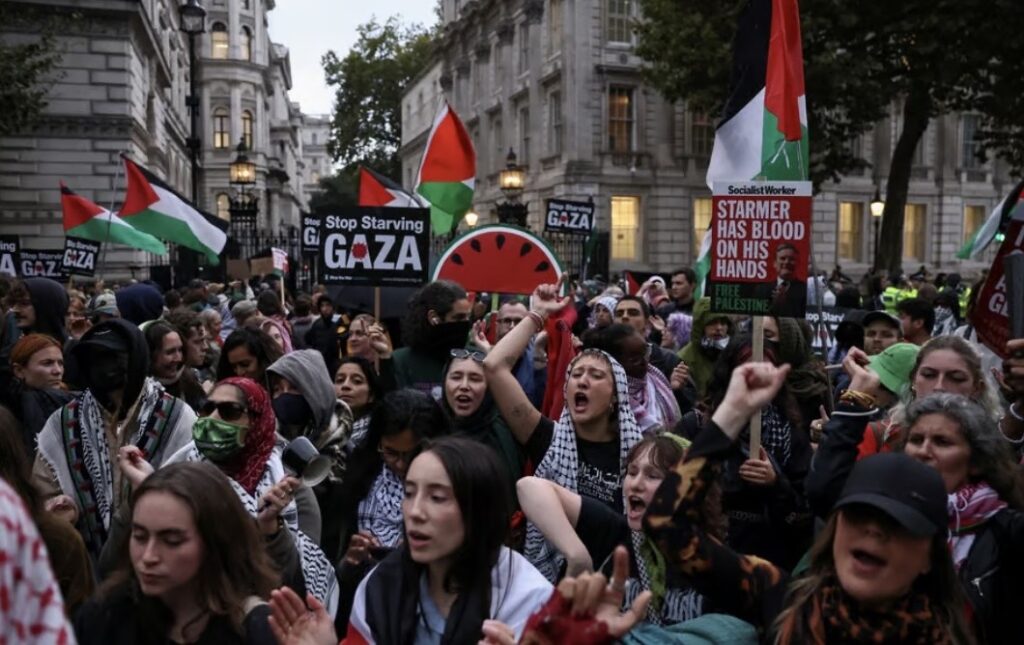 À Whitehall, une manifestation de 300 personnes a été organisée par le Mouvement mondial pour Gaza afin d’exiger la protection de la flottille et protester contre la proscription de l’action palestinienne. Scotland Yard avait imposé des conditions pour garder les routes ouvertes et éviter de graves perturbations. Les forces de l’ordre estiment que ces conditions n’ont pas été respectées et ont donc réprimé le cortège, entrainant des affrontements entre manifestants et les agents. Au total, 40 personnes ont été interpellées, 6 « pour agressions contre des policiers », les 34 autres pour « violation de conditions ».