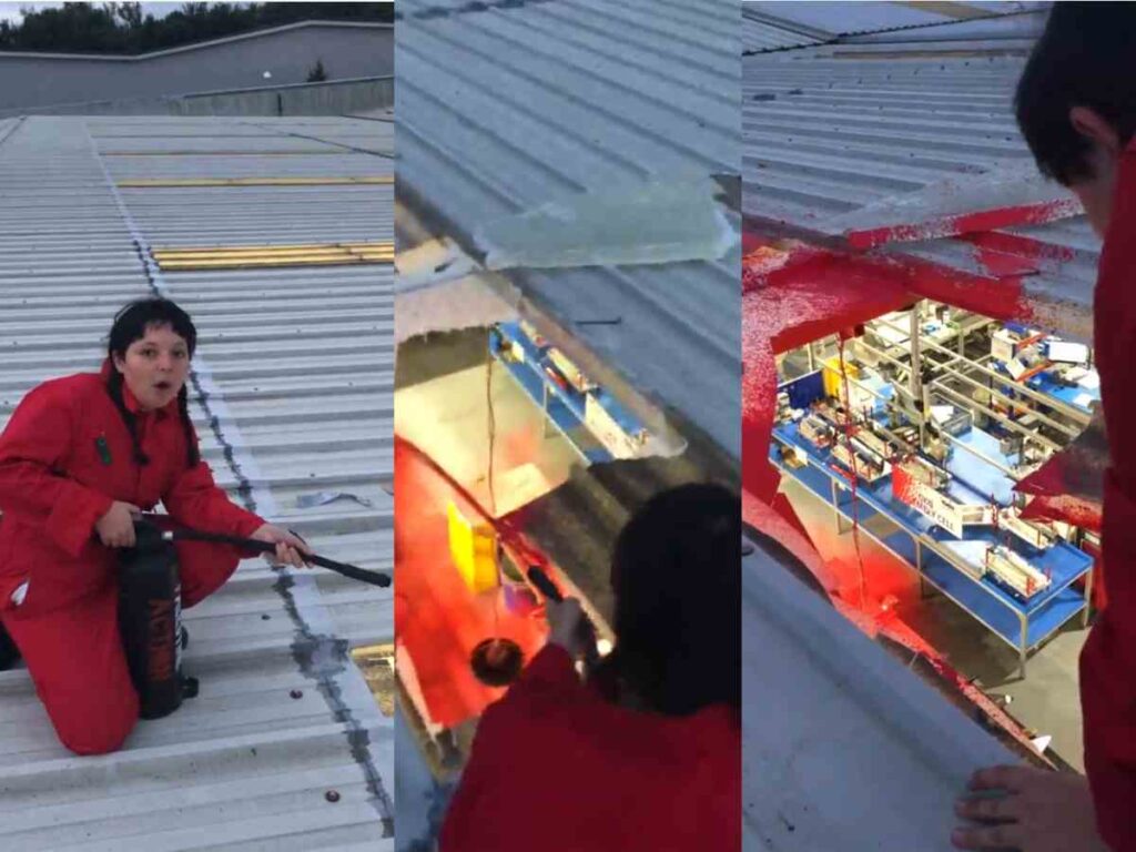 Les activistes ont percé des trous à la toiture de l’entreprise et ont pulvérisé de la peinture rouge sang . Bien déterminé à stopper la production de pièces d’armement, deux militants, entrés dans le bâtiment, ont atteint la salle blanche , zone sensible, où sont assemblés sous contrôle de l’air et de l’humidité et dans des règles d’hygiène particulières les composants techniques de pièces de F-35 destinés à l’armée israélienne. Leur action a stoppé l’entreprise, causant des dégâts et l’arrêt de production pour une période d’environ 12 mois. Les forces de l’ordre ont arrêté deux des militants qui étaient entrés dans l’usine par le toit et avaient été détenues à l’intérieur par les travailleurs. Le troisième manifestant a été arrêté après avoir été aidé à descendre du toit par le service d’incendie et de sauvetage de Merseyside.