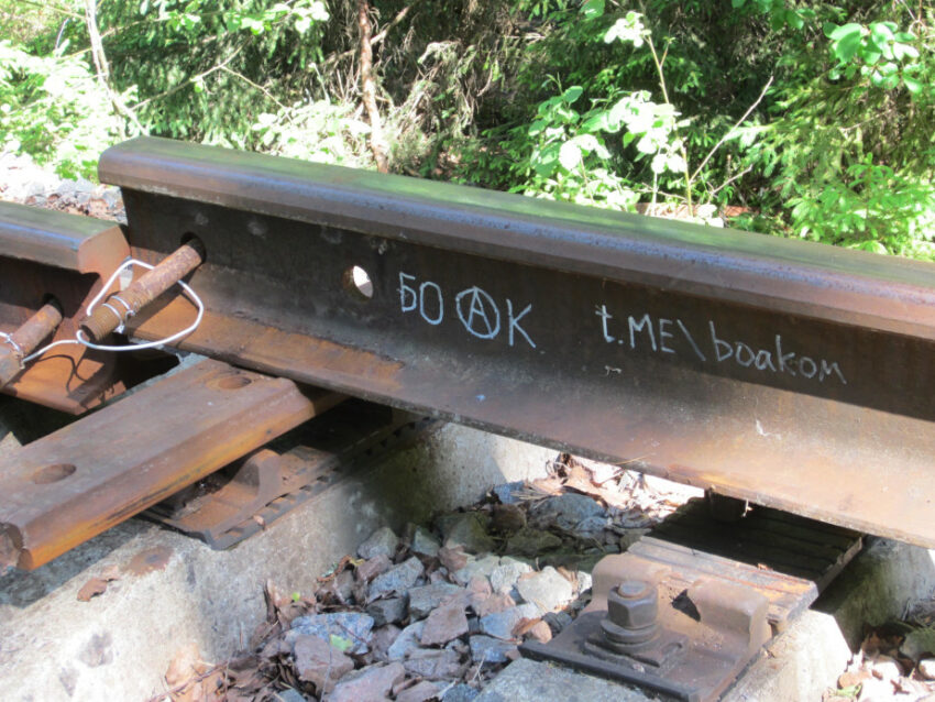 L’Organisation combattante anarcho-communiste (Боевая Организация Анархо-Коммунистов, БОАК) a revendiqué le sabotage de la ligne ferroviaire menant à l’unité militaire 55443 à Barsovo (51e arsenal de la Direction principale des missiles et de l’artillerie du ministère russe de la Défense), près de Kirzhach, dans l’oblast de Vladimir. Les 34 écrous (17 de chaque côté) qui maintiennent le rail et les 4 écrous de fixation d’éclisses ont été dévissés, le rail a été déplacé (un fil ayant été posé au cas où un signal serait transmis le long du rail à travers le courant, pour détecter une disjonction des rails).