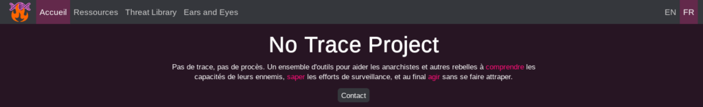 Le Counter-Surveillance Resource Center devient le No Trace Project. Ce site très riche rassemble les études et publications relatives à la sécurité militante (téléphone, ADN, étude des textes etc.) et répertorie, photographies à l’appui, les différents dispositifs d’espionnages trouvé par les militants dans leurs véhicules, domiciles ou locaux.