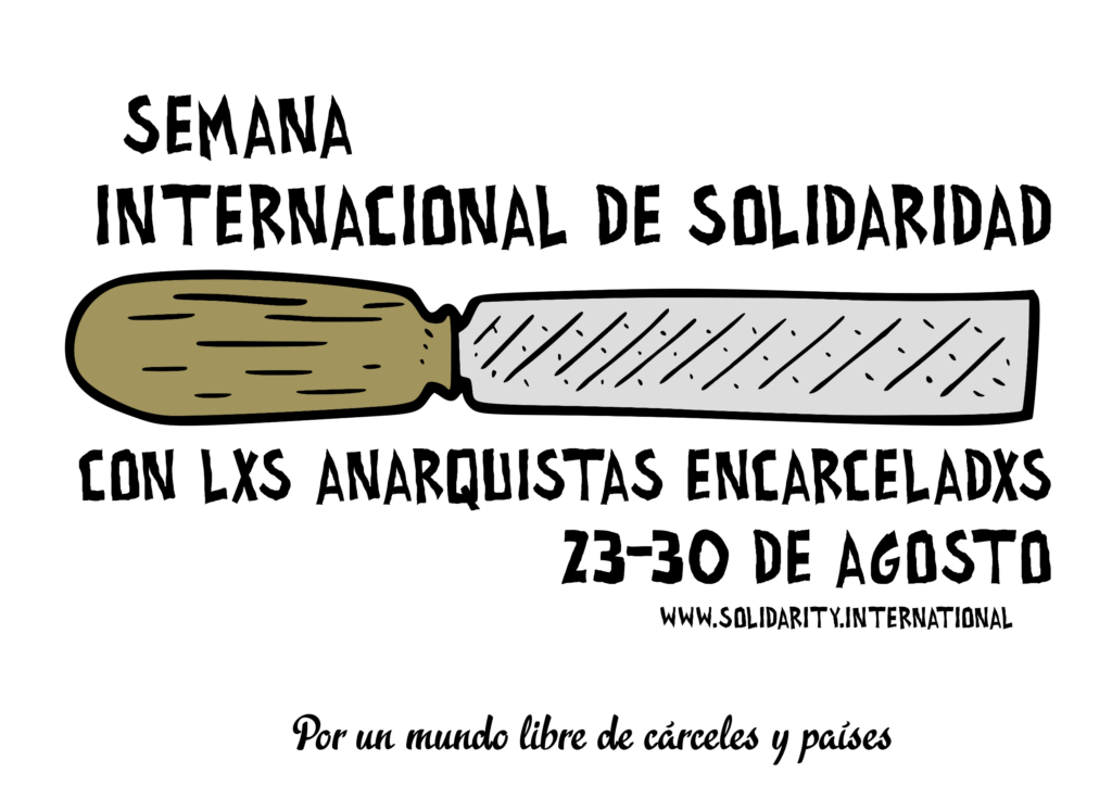 26/08/2021 | Divers | #Anarchisme | #Prisonnier·e·s | Facebook X WhatsApp Telegram Semaine de solidarité avec les prisonnier.e.s anarchistes La semaine a lieu du 23 au 30 août, un article ultérieur exposera les initiatives menées dans ce cadre