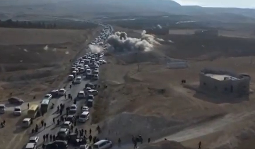 Des milliers de personnes venant de différentes région (Hasakah, Raqqa, Jazira) de l’Administration Autonome du Nord-Est Syrien (AANES) était en route, ce mercredi 8 janvier, avec comme objectif de se rassembler au sommet du barrage de Tishreen pour protester et condamner les attaques militaires turques en cours. Sur la route du barrage, le convoi a été attaqué par un drone turc faisant 5 morts et blessants 15 personnes.